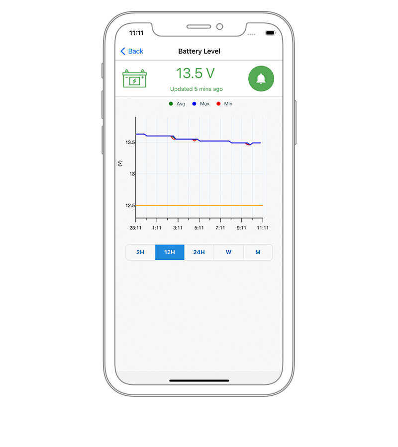 See status and history of built-in and connected sensors. Monitor bilge, security, power and other instruments. Set alarms and alarm thresholds, review data history and know when the sensor was last active.