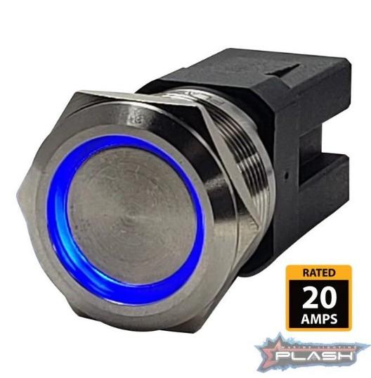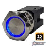 PLASHLIGHTS Marine Push Button Switch – Blue LED – 20a – Stainless Steel – Momentary | PL22SS-M-BL