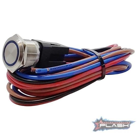 PLASHLIGHTS Marine Push Button Switch – Blue LED – 20a – Stainless Steel – Momentary